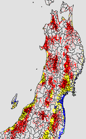 登熟停止が懸念される最低気温として、八柳(1960)は10℃を設定している。それを基に、極端な低温が来た地域の移り変わりを、最低気温の前3日の移動平均値で図示する。