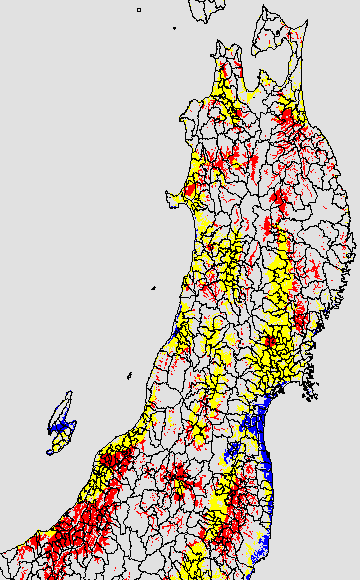 登熟停止が懸念される最低気温として、八柳(1960)は10℃を設定している。それを基に、極端な低温が来た地域の移り変わりを、最低気温の前3日の移動平均値で図示する。