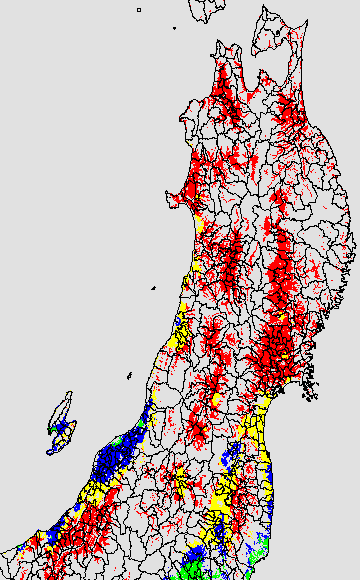 安全作期の策定にある気温指標のうち、夏作物の生育可能な気温指標10℃を用いて表示しています。10℃以下については1℃刻みで表示し、可能域がどのように推移するかをみるものです。