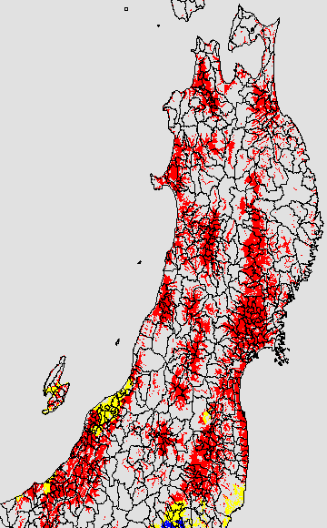 安全作期の策定にある気温指標のうち、湛水直播の安全早限日の気温指標11.5℃を用いて表示しています。11.5℃以下については1℃刻みで表示し、可能域がどのように推移するかをみるものです。
