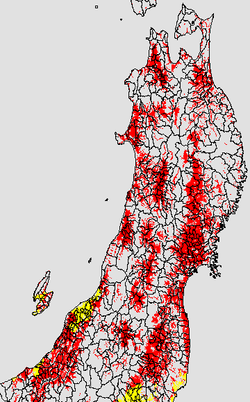安全作期の策定にある気温指標のうち、稚苗移植の安全早限日の気温指標12.0℃を用いて表示しています。12.0℃以下については1℃刻みで表示し、可能域がどのように推移するかをみるものです。