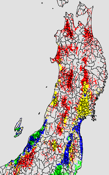 安全作期の策定にある気温指標のうち、夏作物の生育可能な気温指標10℃を用いて表示しています。10℃以下については1℃刻みで表示し、可能域がどのように推移するかをみるものです。