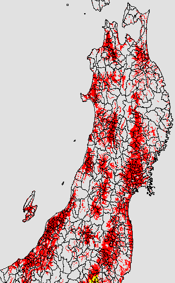 安全作期の策定にある気温指標のうち、乾田直播の安全早限日の気温指標13.5℃を用いて表示しています。13.5℃以下については1℃刻みで表示し、可能域がどのように推移するかをみるものです。