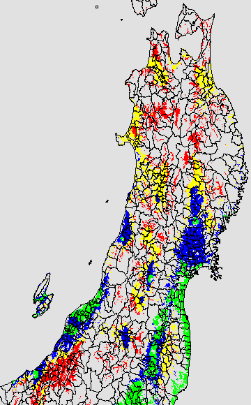 安全作期の策定にある気温指標のうち、夏作物の生育可能な気温指標10℃を用いて表示しています。10℃以下については1℃刻みで表示し、可能域がどのように推移するかをみるものです。