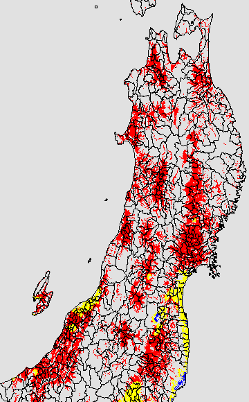 安全作期の策定にある気温指標のうち、中苗・成苗移植の安全早限日の気温指標13.0℃を用いて表示しています。13.0℃以下については1℃刻みで表示し、可能域がどのように推移するかをみるものです。