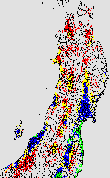 安全作期の策定にある気温指標のうち、稚苗移植の安全早限日の気温指標12.0℃を用いて表示しています。12.0℃以下については1℃刻みで表示し、可能域がどのように推移するかをみるものです。