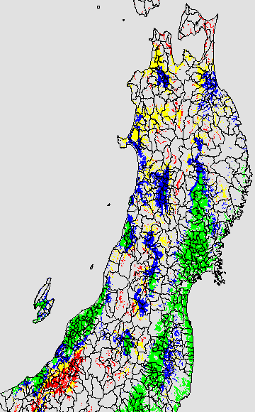 安全作期の策定にある気温指標のうち、湛水直播の安全早限日の気温指標11.5℃を用いて表示しています。11.5℃以下については1℃刻みで表示し、可能域がどのように推移するかをみるものです。