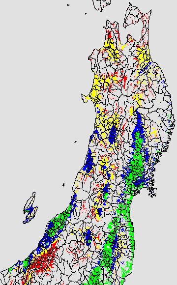 安全作期の策定にある気温指標のうち、稚苗移植の安全早限日の気温指標12.0℃を用いて表示しています。12.0℃以下については1℃刻みで表示し、可能域がどのように推移するかをみるものです。