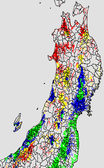 安全作期の策定にある気温指標のうち、中苗・成苗移植の安全早限日の気温指標13.0℃を用いて表示しています。13.0℃以下については1℃刻みで表示し、可能域がどのように推移するかをみるものです。