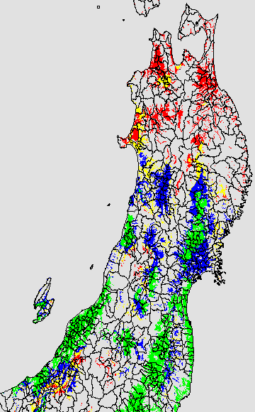 安全作期の策定にある気温指標のうち、中苗・成苗移植の安全早限日の気温指標13.0℃を用いて表示しています。13.0℃以下については1℃刻みで表示し、可能域がどのように推移するかをみるものです。