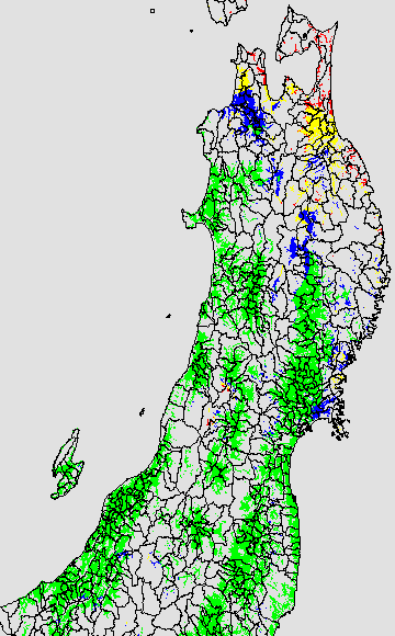 安全作期の策定にある気温指標のうち、中苗・成苗移植の安全早限日の気温指標13.0℃を用いて表示しています。13.0℃以下については1℃刻みで表示し、可能域がどのように推移するかをみるものです。