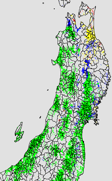 安全作期の策定にある気温指標のうち、稚苗移植の安全早限日の気温指標12.0℃を用いて表示しています。12.0℃以下については1℃刻みで表示し、可能域がどのように推移するかをみるものです。