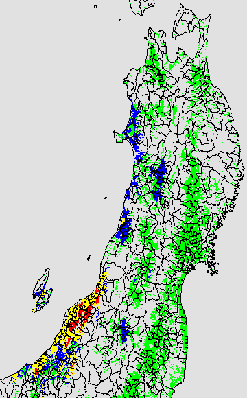 安全作期の策定にある気温指標のうち、いもち病蔓延可能日の平均気温指標20.0℃を用いて表示し、20.0℃未満については1℃刻みで表示します。過去7日の移動平均値で示しています。いもち病の蔓延可能域を監視するものです。 葉いもち発生予察メッシュと併せてご覧ください。