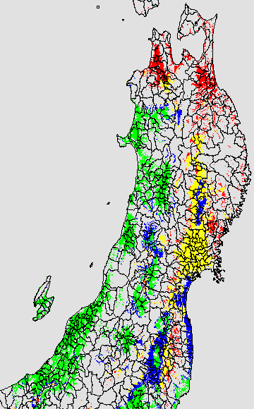 各種文献などを参考にして、分げつ形成に関する限界温度を平均気温で15℃と設定し、15℃以上については1℃刻みで表示します。過去7日の移動平均値で示す。分げつの形成が遅延すると予想される地域を監視するものです。