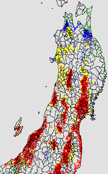 安全作期の策定にある気温指標のうち、いもち病蔓延可能日の平均気温指標20.0℃を用いて表示し、20.0℃未満については1℃刻みで表示します。過去7日の移動平均値で示しています。いもち病の蔓延可能域を監視するものです。 葉いもち発生予察メッシュと併せてご覧ください。
