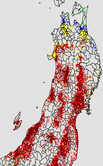 葉いもち蔓延可能域