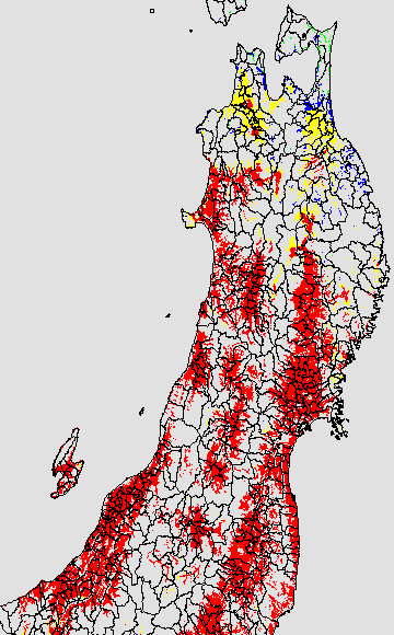 安全作期の策定にある気温指標のうち、いもち病蔓延可能日の平均気温指標20.0℃を用いて表示し、20.0℃未満については1℃刻みで表示します。過去7日の移動平均値で示しています。いもち病の蔓延可能域を監視するものです。 葉いもち発生予察メッシュと併せてご覧ください。