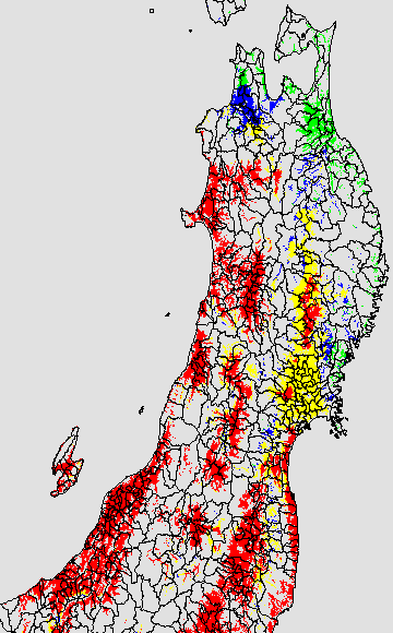 安全作期の策定にある気温指標のうち、いもち病蔓延可能日の平均気温指標20.0℃を用いて表示し、20.0℃未満については1℃刻みで表示します。過去7日の移動平均値で示しています。いもち病の蔓延可能域を監視するものです。 葉いもち発生予察メッシュと併せてご覧ください。