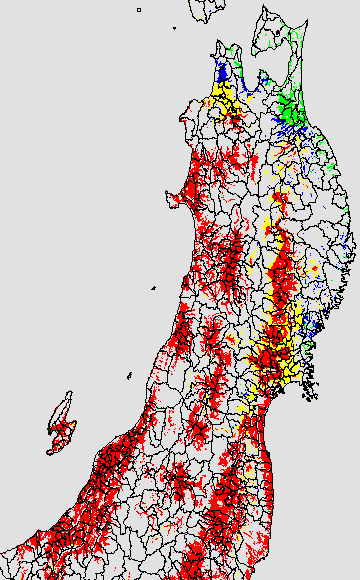 安全作期の策定にある気温指標のうち、いもち病蔓延可能日の平均気温指標20.0℃を用いて表示し、20.0℃未満については1℃刻みで表示します。過去7日の移動平均値で示しています。いもち病の蔓延可能域を監視するものです。 葉いもち発生予察メッシュと併せてご覧ください。