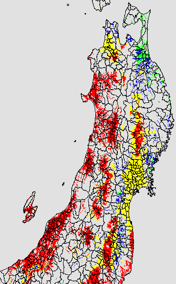 安全作期の策定にある気温指標のうち、いもち病蔓延可能日の平均気温指標20.0℃を用いて表示し、20.0℃未満については1℃刻みで表示します。過去7日の移動平均値で示しています。いもち病の蔓延可能域を監視するものです。 葉いもち発生予察メッシュと併せてご覧ください。