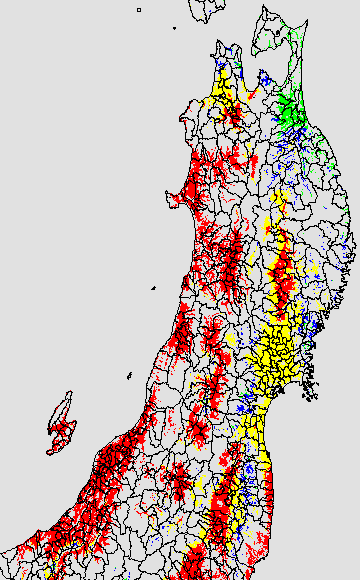 安全作期の策定にある気温指標のうち、いもち病蔓延可能日の平均気温指標20.0℃を用いて表示し、20.0℃未満については1℃刻みで表示します。過去7日の移動平均値で示しています。いもち病の蔓延可能域を監視するものです。 葉いもち発生予察メッシュと併せてご覧ください。
