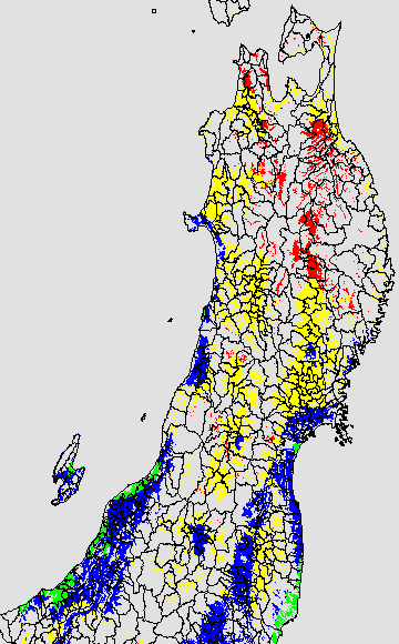 低温障害の発生の基準温度として、最低気温17℃が一般によく使われます。それを基に、極端な低温が来た地域の移り変わりを、最低気温の前3日の移動平均値で図示します。