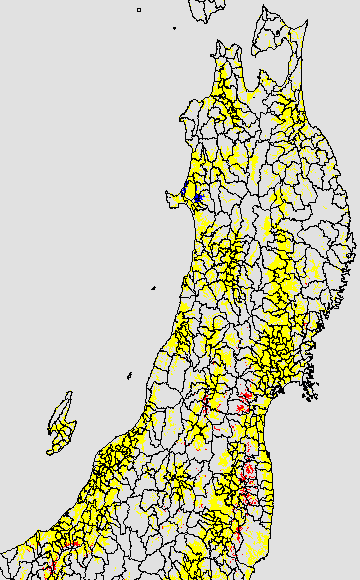 開花・受精期も低温に弱い時期です。文献等を参考に開花・受精に不適な地域の移り変わりを、最高気温を用いて前5日間の移動平均値で図示します。