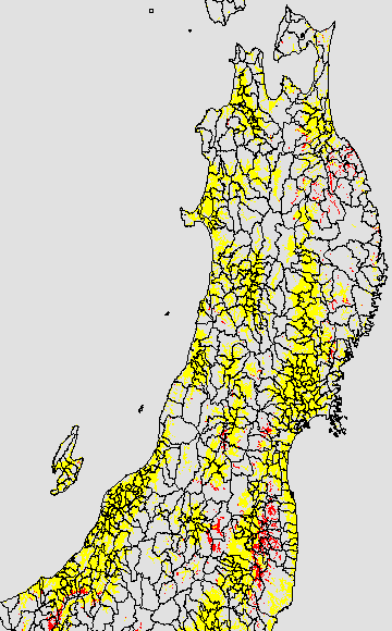 開花・受精期も低温に弱い時期です。文献等を参考に開花・受精に不適な地域の移り変わりを、最高気温を用いて前5日間の移動平均値で図示します。