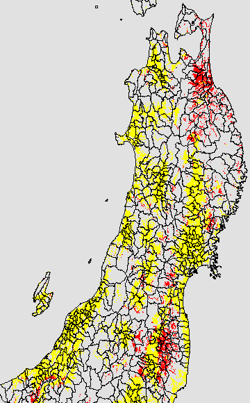開花・受精期も低温に弱い時期です。文献等を参考に開花・受精に不適な地域の移り変わりを、最高気温を用いて前5日間の移動平均値で図示します。