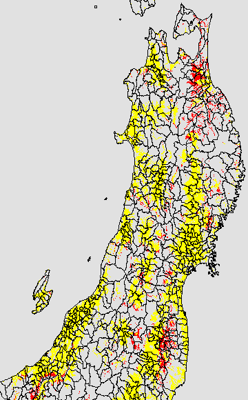 開花・受精期も低温に弱い時期です。文献等を参考に開花・受精に不適な地域の移り変わりを、最高気温を用いて前5日間の移動平均値で図示します。