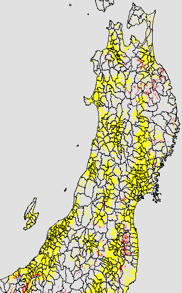 開花・受精期も低温に弱い時期です。文献等を参考に開花・受精に不適な地域の移り変わりを、最高気温を用いて前5日間の移動平均値で図示します。