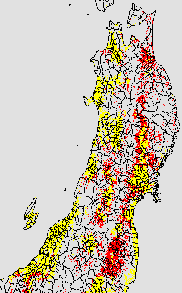 開花・受精期も低温に弱い時期です。文献等を参考に開花・受精に不適な地域の移り変わりを、最高気温を用いて前5日間の移動平均値で図示します。