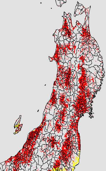 開花・受精期も低温に弱い時期です。文献等を参考に開花・受精に不適な地域の移り変わりを、最高気温を用いて前5日間の移動平均値で図示します。