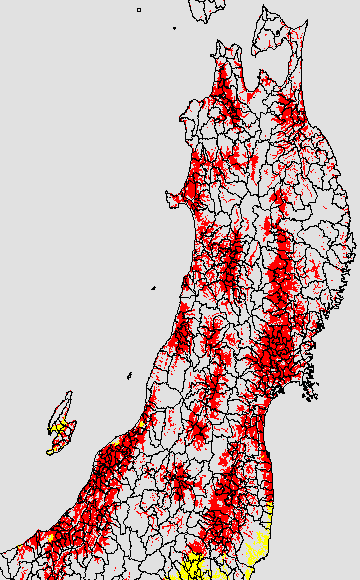 開花・受精期も低温に弱い時期です。文献等を参考に開花・受精に不適な地域の移り変わりを、最高気温を用いて前5日間の移動平均値で図示します。
