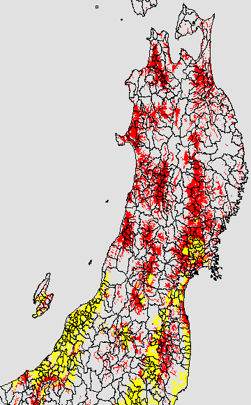 開花・受精期も低温に弱い時期です。文献等を参考に開花・受精に不適な地域の移り変わりを、最高気温を用いて前5日間の移動平均値で図示します。