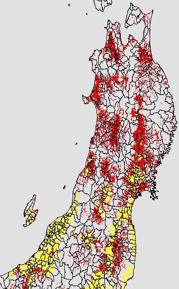 開花・受精期も低温に弱い時期です。文献等を参考に開花・受精に不適な地域の移り変わりを、最高気温を用いて前5日間の移動平均値で図示します。