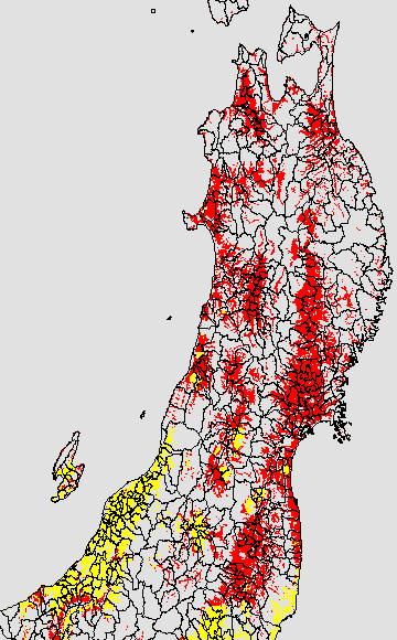 開花・受精期も低温に弱い時期です。文献等を参考に開花・受精に不適な地域の移り変わりを、最高気温を用いて前5日間の移動平均値で図示します。