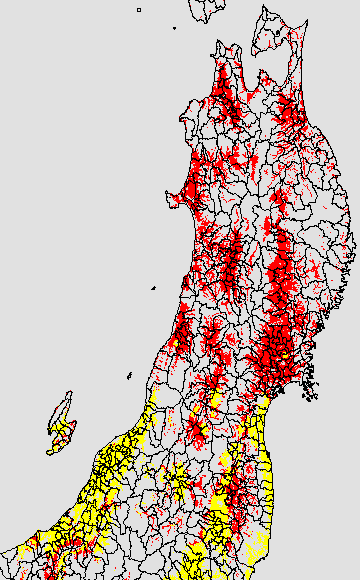 開花・受精期も低温に弱い時期です。文献等を参考に開花・受精に不適な地域の移り変わりを、最高気温を用いて前5日間の移動平均値で図示します。