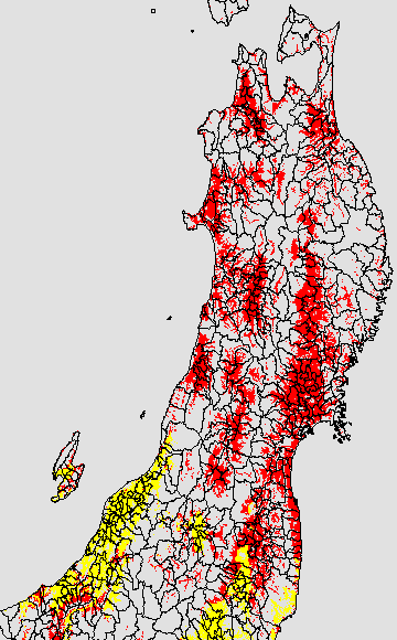 開花・受精期も低温に弱い時期です。文献等を参考に開花・受精に不適な地域の移り変わりを、最高気温を用いて前5日間の移動平均値で図示します。