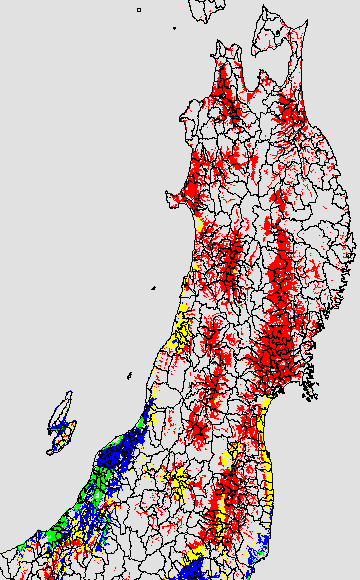 安全作期の策定にある気温指標のうち、夏作物の生育可能な気温指標10℃を用いて表示しています。10℃以下については1℃刻みで表示し、可能域がどのように推移するかをみるものです。