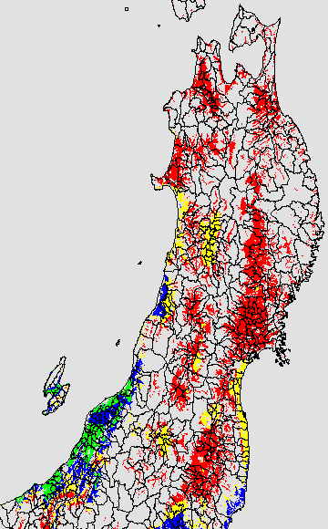 安全作期の策定にある気温指標のうち、夏作物の生育可能な気温指標10℃を用いて表示しています。10℃以下については1℃刻みで表示し、可能域がどのように推移するかをみるものです。