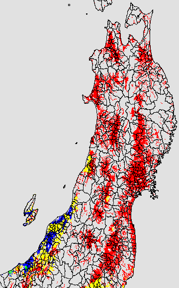 安全作期の策定にある気温指標のうち、中苗・成苗移植の安全早限日の気温指標13.0℃を用いて表示しています。13.0℃以下については1℃刻みで表示し、可能域がどのように推移するかをみるものです。
