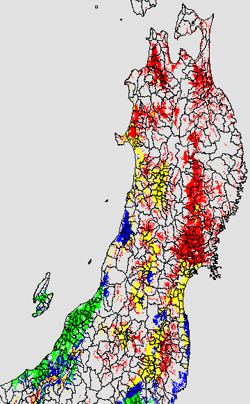 安全作期の策定にある気温指標のうち、稚苗移植の安全早限日の気温指標12.0℃を用いて表示しています。12.0℃以下については1℃刻みで表示し、可能域がどのように推移するかをみるものです。