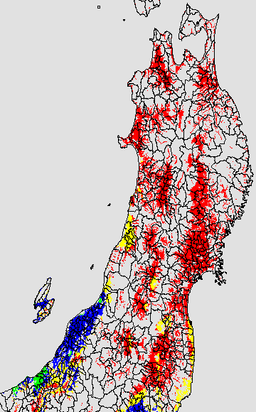 安全作期の策定にある気温指標のうち、中苗・成苗移植の安全早限日の気温指標13.0℃を用いて表示しています。13.0℃以下については1℃刻みで表示し、可能域がどのように推移するかをみるものです。