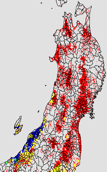 安全作期の策定にある気温指標のうち、乾田直播の安全早限日の気温指標13.5℃を用いて表示しています。13.5℃以下については1℃刻みで表示し、可能域がどのように推移するかをみるものです。