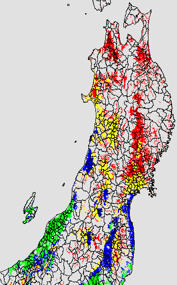 安全作期の策定にある気温指標のうち、稚苗移植の安全早限日の気温指標12.0℃を用いて表示しています。12.0℃以下については1℃刻みで表示し、可能域がどのように推移するかをみるものです。