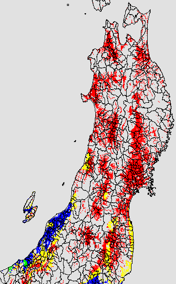 安全作期の策定にある気温指標のうち、乾田直播の安全早限日の気温指標13.5℃を用いて表示しています。13.5℃以下については1℃刻みで表示し、可能域がどのように推移するかをみるものです。