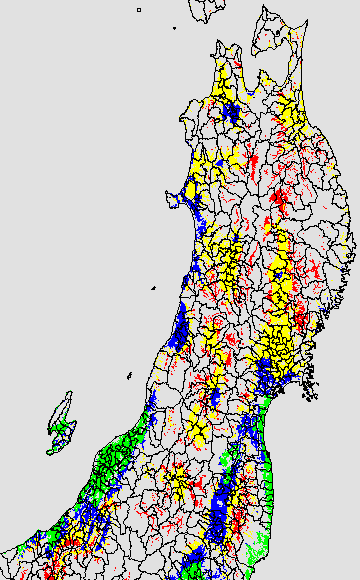 安全作期の策定にある気温指標のうち、湛水直播の安全早限日の気温指標11.5℃を用いて表示しています。11.5℃以下については1℃刻みで表示し、可能域がどのように推移するかをみるものです。