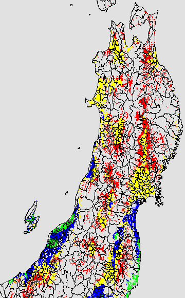安全作期の策定にある気温指標のうち、稚苗移植の安全早限日の気温指標12.0℃を用いて表示しています。12.0℃以下については1℃刻みで表示し、可能域がどのように推移するかをみるものです。