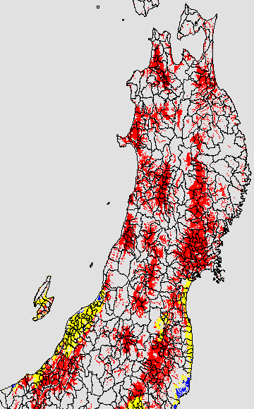 安全作期の策定にある気温指標のうち、乾田直播の安全早限日の気温指標13.5℃を用いて表示しています。13.5℃以下については1℃刻みで表示し、可能域がどのように推移するかをみるものです。
